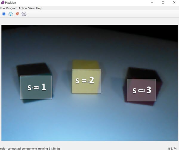 PixyMon should now show the color signature number of each unique block color with an outline and a label: