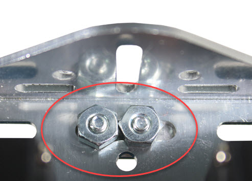 - Connect an ’L’ bracket into the front of the Shield-Bot chassis, using two 1/4″ screws and two nuts, as shown. Note that it is slightly off center. This will allow the Pixy2 camera to be centered, after accounting for the thickness of the ’L’ brackets.