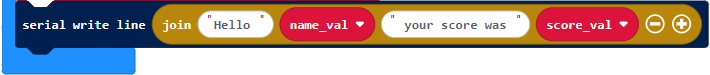 After looking up the values and storing them in variables, the project uses a serial write block to display “Hello Sir Lancelot your score was 1000”.