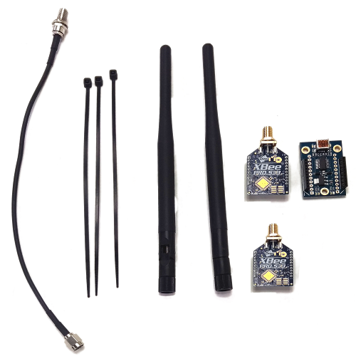 The ELEV-8 v3’s Flight Controller has a socket that is compatible with XBee modules from Digi. Because the radio link used by the transmitter and reciever for flying your ELEV-8 v3 operates in the 2.4 GHz band, it is important to use XBee radios that operate in a different freqency band. In the United States, the best band for this application is the 900 MHz band (868 MHz will be required instead in some countries). This frequency band allows both good range and data throughput.