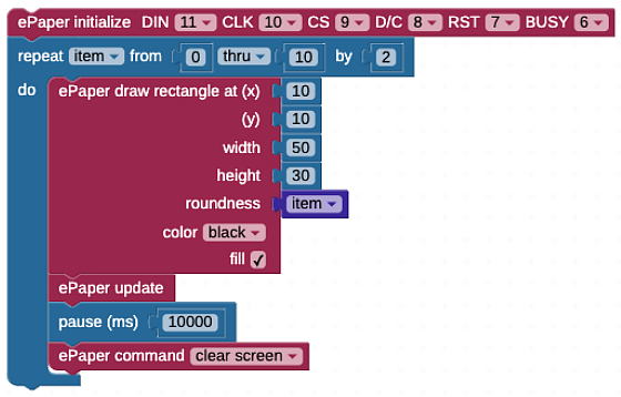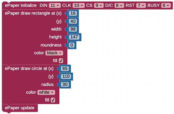 - Try drawing rectangles that are not filled (outline) by unchecking the “fill” checkbox on the ePaper draw rectangle block.