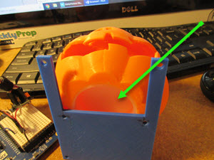 - Glue the light diffuser you made into the bottom of the pumpkin and then glue head to the platform. Leave about half of the head over the cut out in platform so you have room to insert the LEDs. I used CA glue with PLA filament for good bonding.