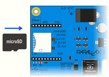 - Insert the microSD card into the card slot on the Activity Board, if it is not already there.