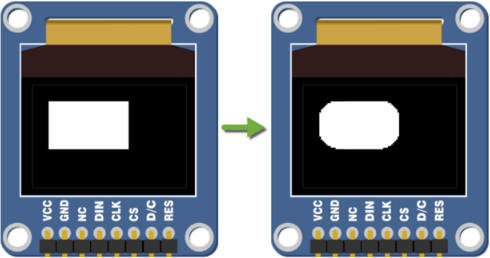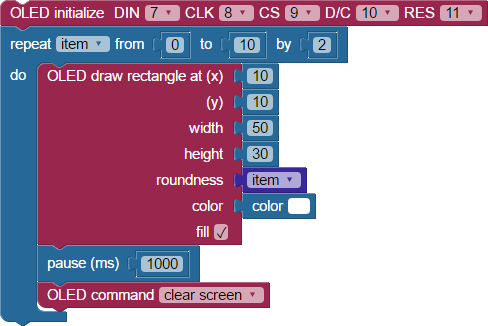- Try drawing rectangles that are not filled (outline) by unchecking the “fill” checkbox on the OLED draw rectangle block.