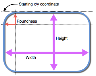 - Rectangles are defined by the coordinates at the top left corner, height, width, and corner roundness.