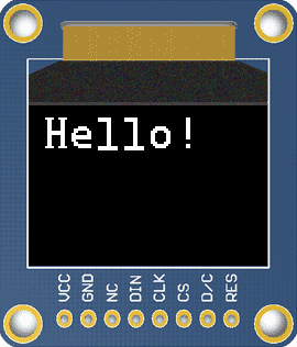 - Add the word “World” back in to the OLED print text block, so it says “Hello World! again, and run it. If the text does not have enough room at the bottom of the screen, it will wrap back to the top left corner of the screen.