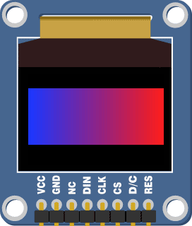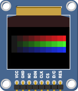 You may notice that your screen doesn’t represent the color exactly correctly – the Color OLED module uses very small Red, Green, and Blue LEDs inside each pixel to create a color, and the brightness of the component colors can vary slightly from module to module. This means that one module might have a slightly reddish tone while another module could have a slightly blueish tone.