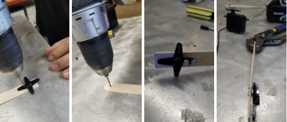 - Using two ½” #4-40 pan head screws and two #4-40 nuts join the servo horn and the popsicle stick.