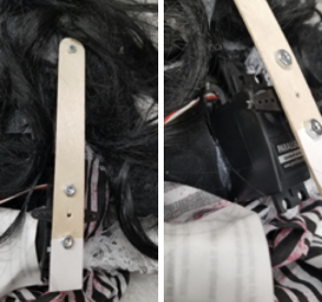 - To build the mechanism that moves the head start by lining up your doll, the popsicle stick, and second servo from the Animation Kit so you can see where holes will need to go.