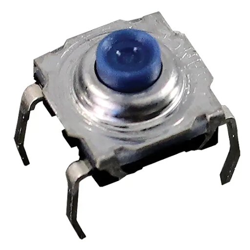 The pushbutton is also called a tact switch. When not pressed, a pushbutton like the one below leaves the closer pair of pins disconnected from the ones in the back. When pressed, it shorts the front row to the back row.