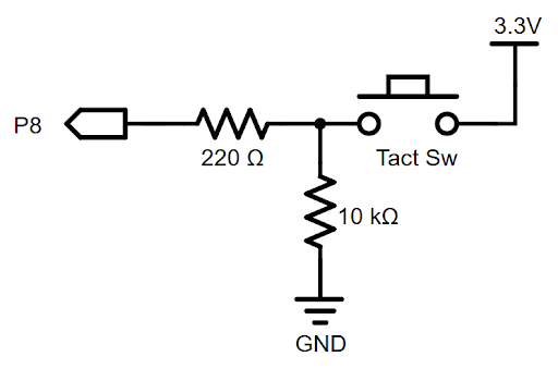 This circuit allows the pushbutton to apply a high (3.3 V) signal to the P8 I/O pin when pressed, and a low (0 V) signal when not pressed.