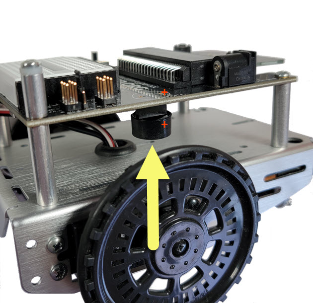 If your piezospeaker has short leads, it may fall out of the socket when inserted from the top of the cyber:bot board. But that is okay, it can still be plugged into the socket from the bottom of the board.