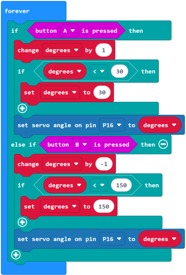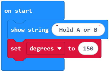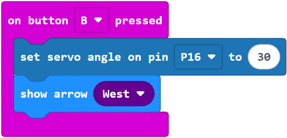 Both servo_angle calls can be considered “set it and forget it” so the servo will hold the position it was most recently set to. Whenever a particular button is pressed, the arrow is updated to point at the other button.
