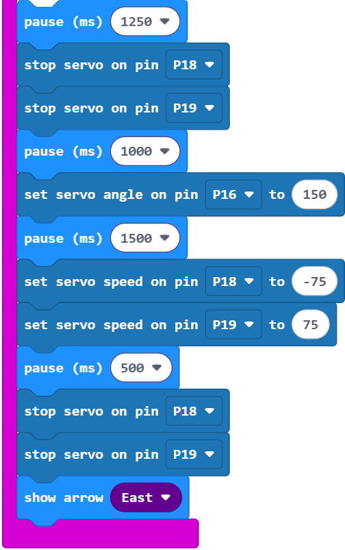 Your Gripper-equipped cyber:bot is not limited to forward and backward motion! With some modifications to the project, you can add any of the turns introduced in the Navigation with the cyber:bot chapter’s Left and Right Turns activity.