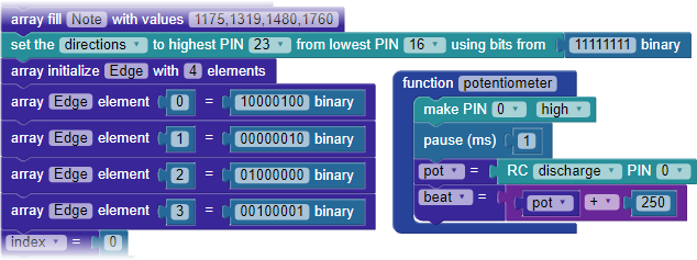 Now, the only items left are a few changes to the repeat forever loop that will use the new Edge array and potentiometer function.