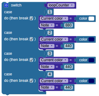 And, change the case statement to reflect the number of beats per measure and the colors set on the NeoPixels: